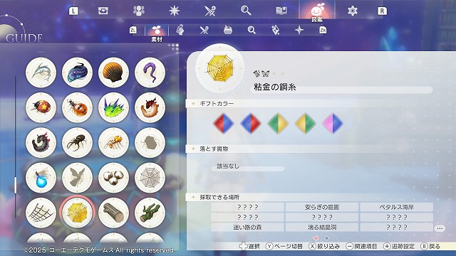 素材同士の色が繋がるように組み合わせていくと、特性を引き継げたりレシピが派生したりと、良いものが作れる仕組みです。(アプリ版もこんな感じだったような?